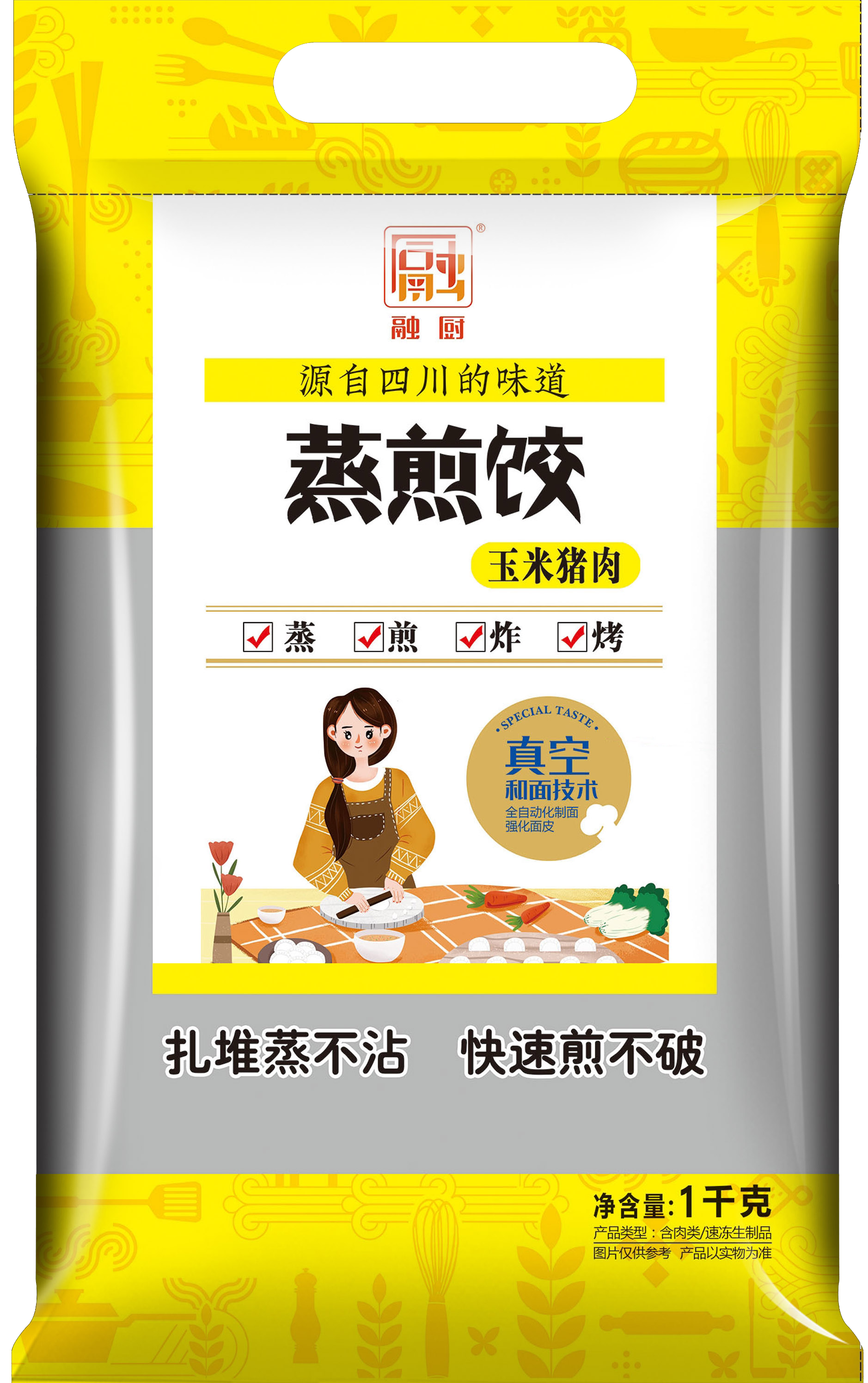 • 1公斤豬肉玉米蒸煎餃